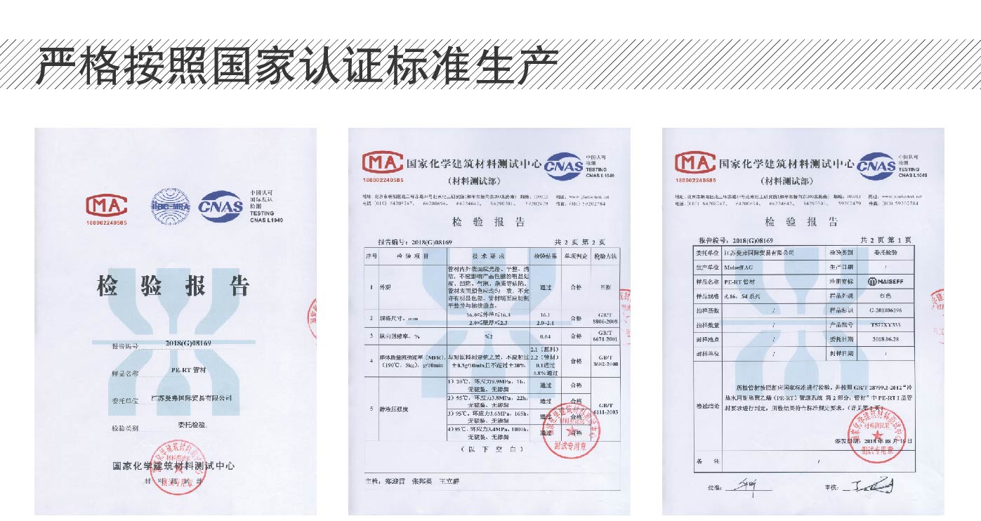 EVOH是乙烯醇的无规共聚物,是一种具有链式分子结构的结晶性聚合物,是世界上三大阻隔树脂之一。曼弗PE-RTⅡ阻氧管创新性的采用多层共挤技术把EVOH和PE-RT Ⅱ之间复合在一起,在保持原有PE-RT Ⅱ的特性上,能有效地阻隔氧分子渗入管道内,大大减少管道结垢现象,有效降低对系统中金属配件的破坏,延长地暖系统使用寿命。